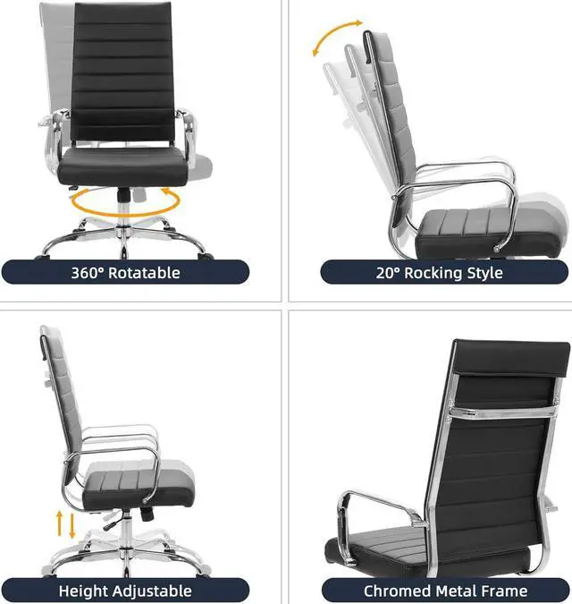EXCELLENT COMFORT This office chair was designed with your comfort in mind, made from soft PU leather upholstery and soft padding. Ergonomic design offers reliable back support for daily use.