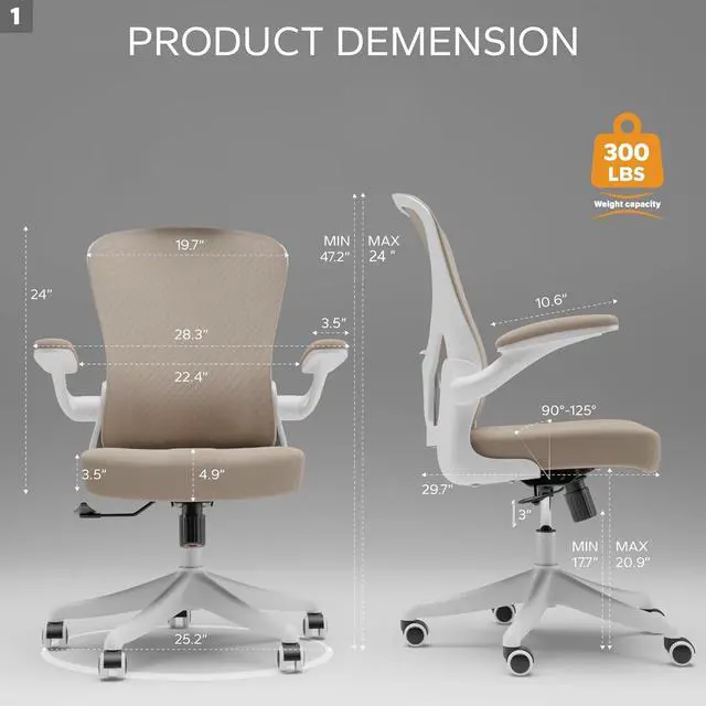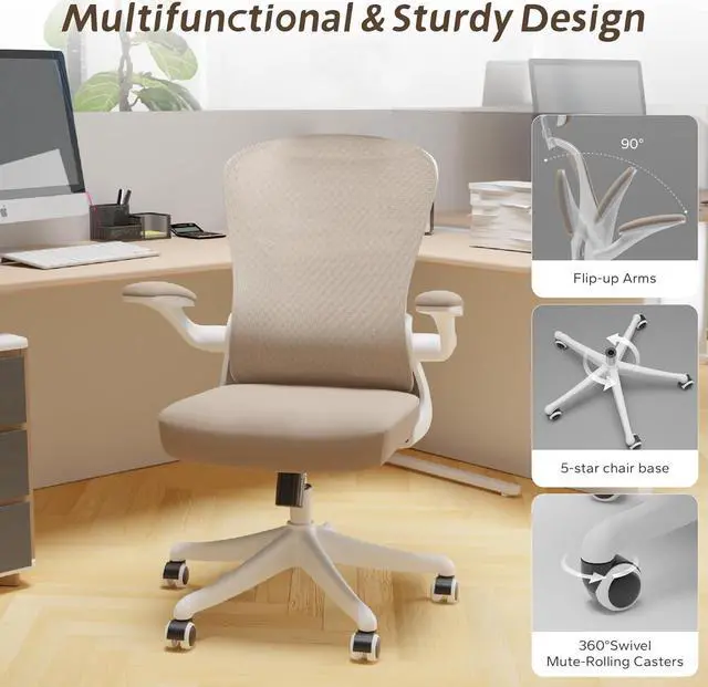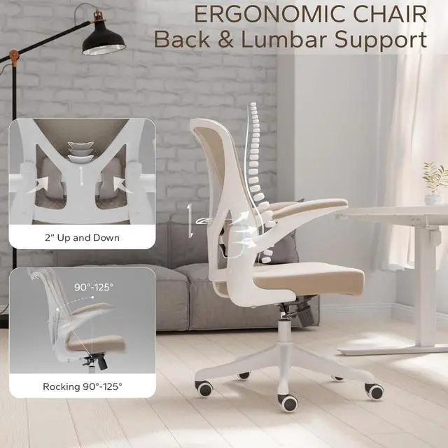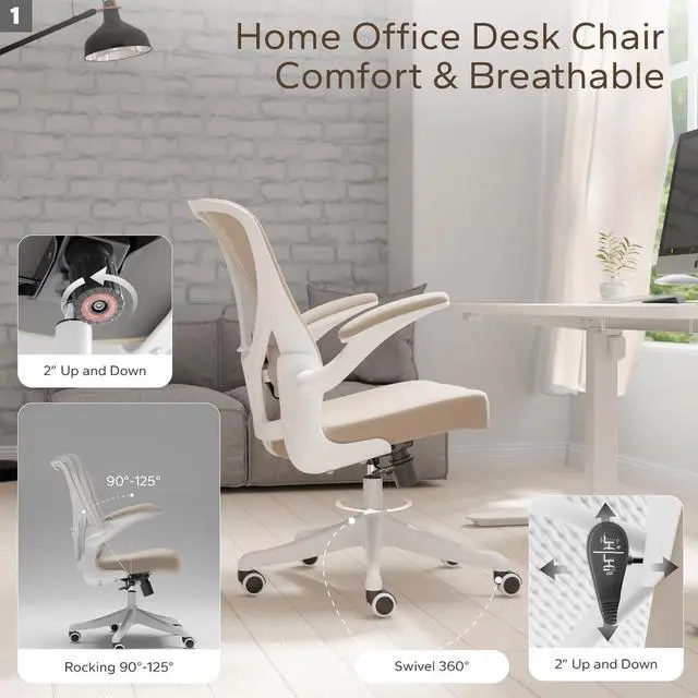 Adjustable height of home office desk chairs: The locking mechanism is easy to adjust the height (4 inches). This gas lift office chair is built with a gaslift cylinder to ensure your safety at every height. Ergonomic design helps you to find the most comfortable seating position for a long term sitting. Adjustable back support with cushion can keep the back upright and take care of your lumbar spine, which prevents back strain and muscle fatigue. 90°Folding Armrests can be turned up to save space. It is suitable for living rooms, bedrooms, meeting rooms and offices