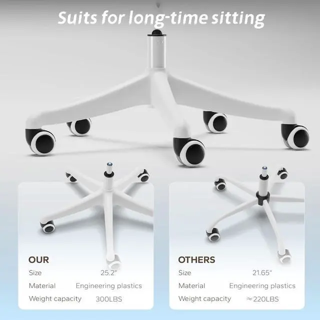 Stable & Durable: High bearing capacity base with smooth and silenced rolling wheels, Max Capacity 300lbs. This back support office chair can be tilted and leaned backward to suit your sitting positions. A tilt tension control knob under the soft seat is provided to adjust the recline angle. The stable nylon base and PU castors can 360-degree swivel, quick scrolling to meet various needs in daily use. The PU casters will not scratch the floor surface when moving