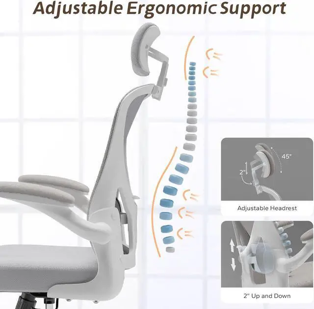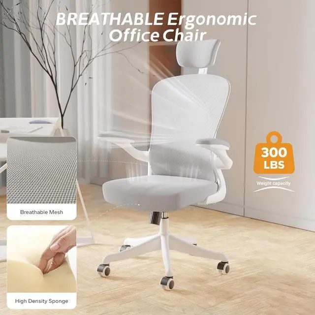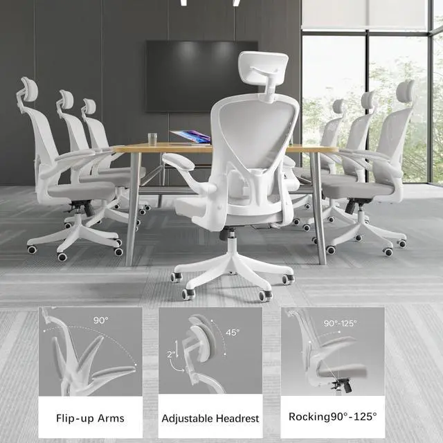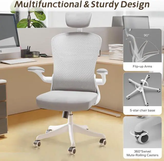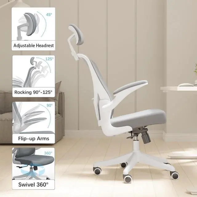 Rocking 90-135° & Flip Up Armrest & Mute Rolling WheelsThis ergonomic office chair height can be adjusted according to your needs, allowing you to find the most comfortable sitting position. The maximum tilt of the office chair is 135°. The desk chair with the flip up arms and mute rolling castor wheels can swivel 360°, which can create more possibilities for your life and work.