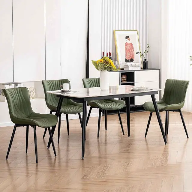 High-quality MaterialDining chairs are made of excellent faux leather, original sponge and metal. Bottom of each chair feet with an adjustable rubber screw for level height. The lacquer on the surface newly upgraded, makes the lounge chair scratch resistant. X Cross Metal legs are thicker and stronger.