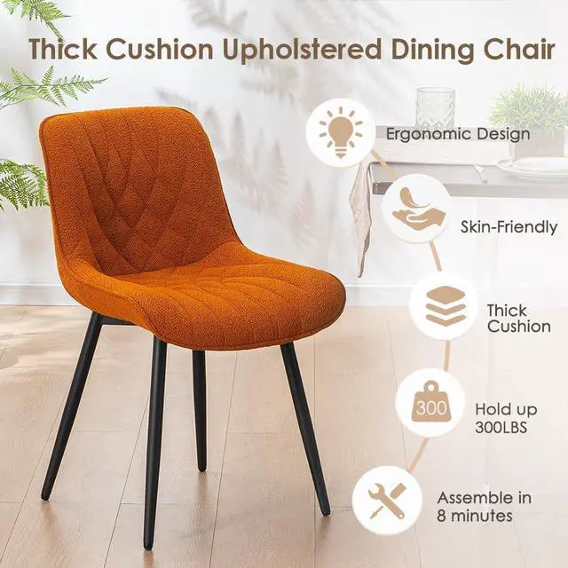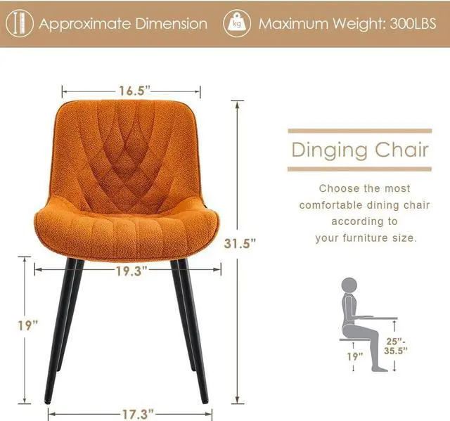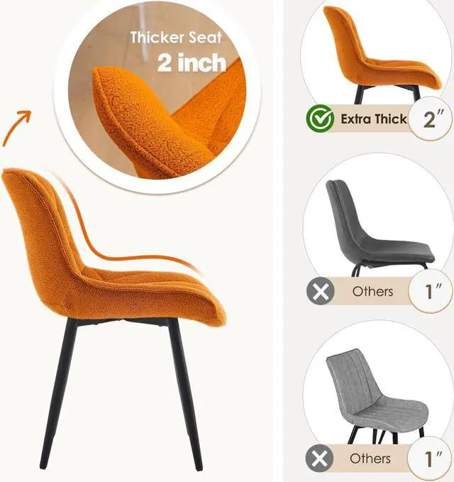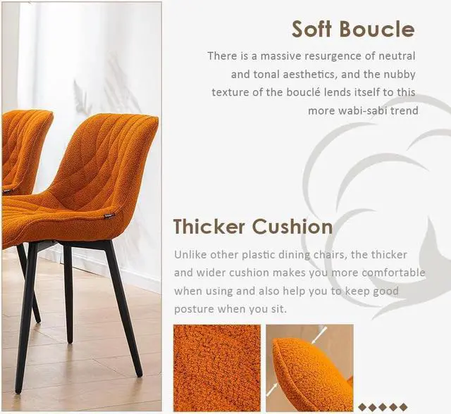 Comfortable Cushion: These dinning chair are made with unique ultra-popular fabric Boucle, which brings a feeling of warmth and calmness. These boucle kitchen chairs provide the ultimate in comfort while adding a cosy and inviting atmosphere to your dining room.