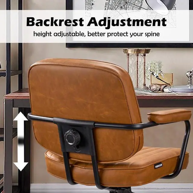 Muliple Adjustment Functions360° Swivel seat is also adjust high, suitable for desks of different heights. The back of brown office chair can lean, and the height can also be adjusted to comfortable position according you. Change back and forth between the bottom back and the middle back, adjust the sitting posture, and better protect your waist and back.
