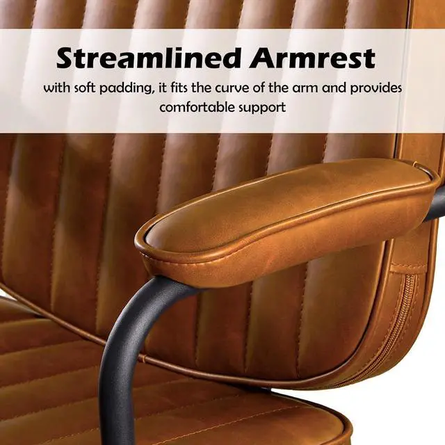 Mid Century Modern Leather Office Chair The combination of unique design elements and exquisite stitching craftsmanship. Warm brown is clean and simple, showing a retro charm without being procrastinating and cumbersome. Great for your living room, bedroom, office, study, or makeup vanity.
