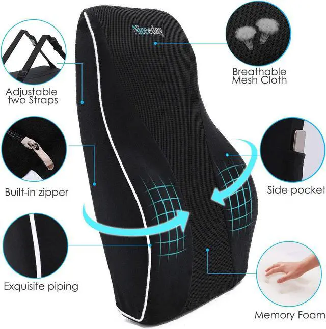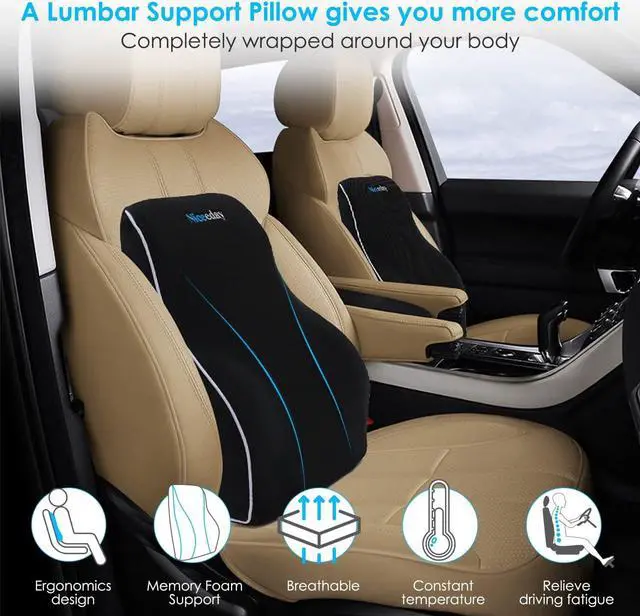 Perfect Lumbar support pillow for office chair / car If you spend a lot of time sitting on office chair and driving in car, this back cushion will perfectly help you. It is designed ergonomically to relieve upper, mid and lower back pain and back tightness, support you to achieve a healthy posture and helps maintain the natural curve of the spine.
