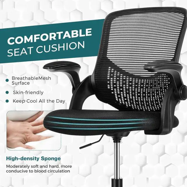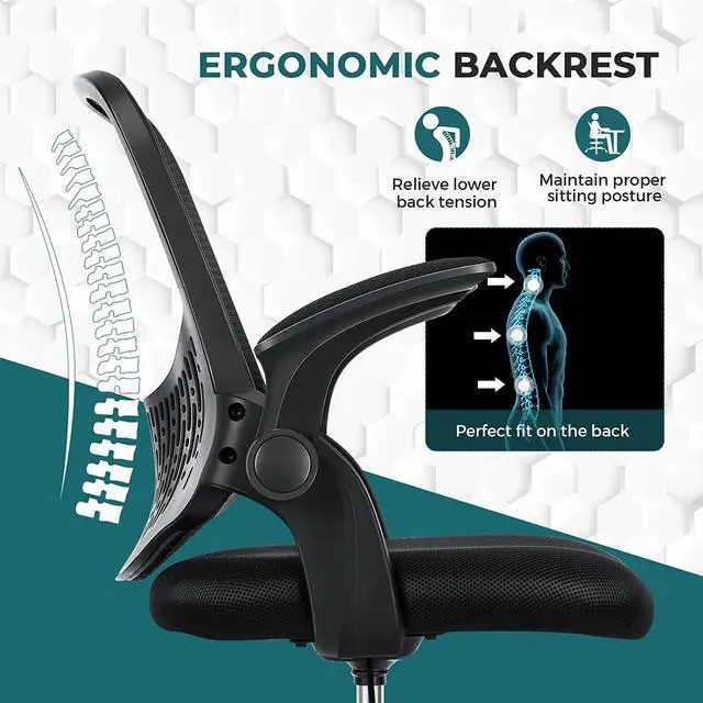 OPENABLE ARMREST - The novel armrests design is the biggest highlight of this chair. Openable design satisfait different desk space. You don't have to worry about wasted space or uncomfortable sitting posture due to the conflict between armrest of task chair and desk. They also allow you to rest comfortably because they are equipped with high quality mesh and cushion.