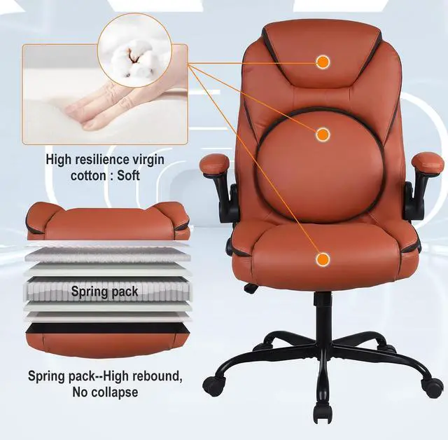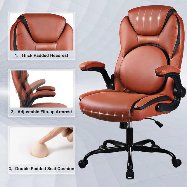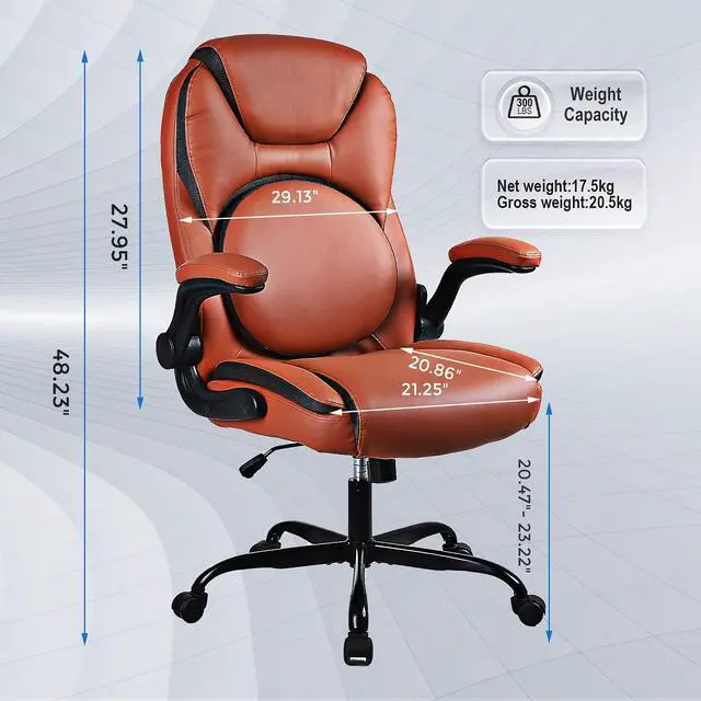This office chair with a high-back features a PU leather exterior to provide a timeless style that fits in any room. Pneumatic, seat height adjustment allows users to sit comfortably at their desks. 360-degree swivel allows effortless rotation for added convenience.