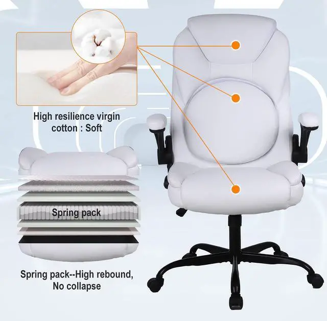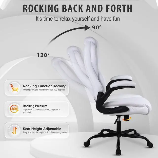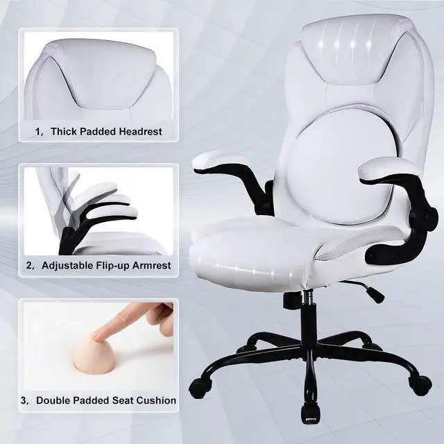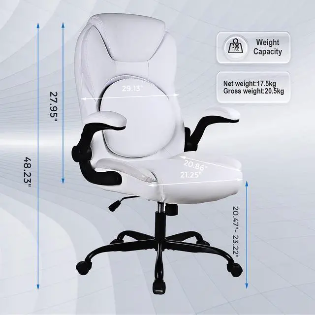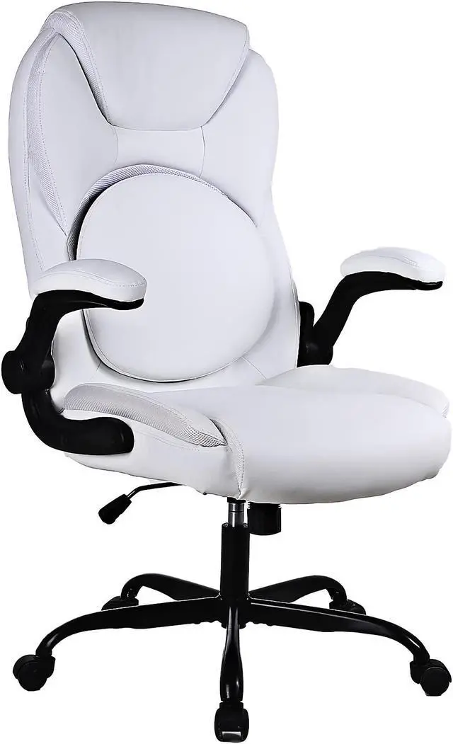 This office chair with a high-back features a PU leather exterior to provide a timeless style that fits in any room. Pneumatic, seat height adjustment allows users to sit comfortably at their desks. 360-degree swivel allows effortless rotation for added convenience.