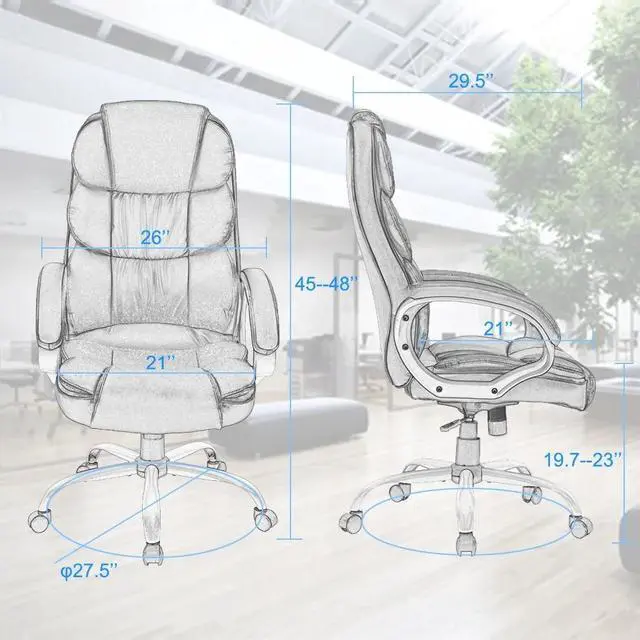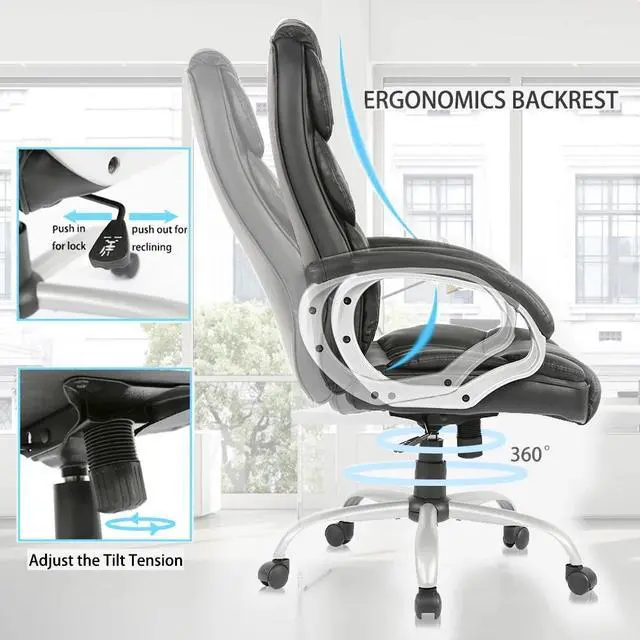 - COMFORTABLE THICKNESS: NOT PRONE TO DEFORMATION - Our office chair have excellent breathable PU leather design, maintain the air flowing naturally in the executive chair seat area keep the sweat and back were not overheating. Office chair computer chair executive chair ergonomic chair.