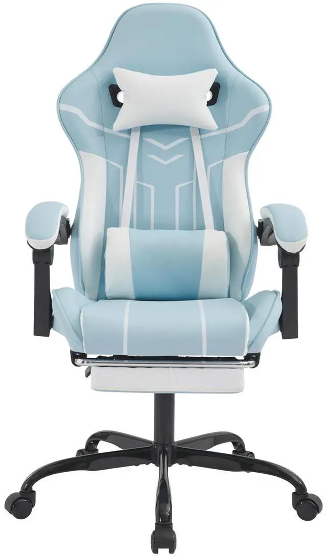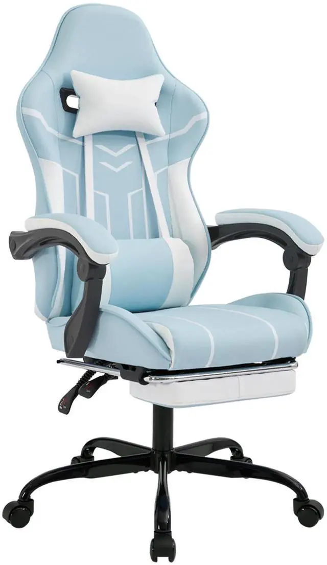 • Gaming chair, Computer Chair Ergonomic Chair with Footrest Office Chair Ergonomic Computer Chair with Lumbar Backrest Blue white