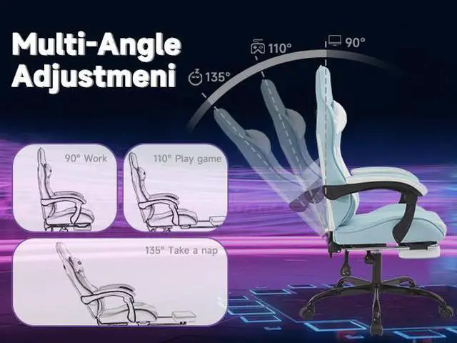 Adjustable backrest: The adjustable gaming desk chair backrest features a safe angle of 90°-135°chair gaming, allowing you to choose the right seat height and tilt according to your needs and experience ultimate versatility reclining gaming chair.