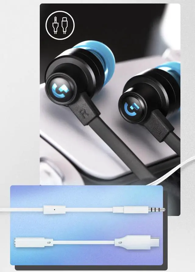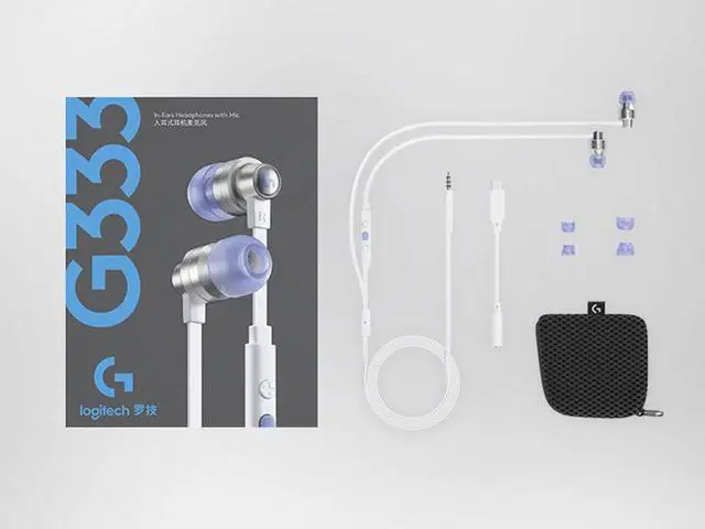 Logitech G333 In-Ear Gaming Headset Dual Driver Audio Wired Earphones Designed for Gaming White