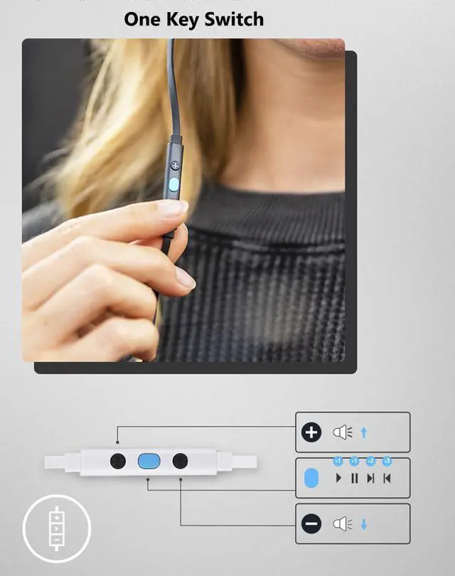 The wire control can play, pause and adjust the volume with one key,