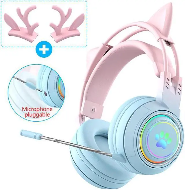 Cat Car Headphones Headset Gamer Wireless Headphones with Mic Gamer Girl Antler Bluetooth Gaming Headphones