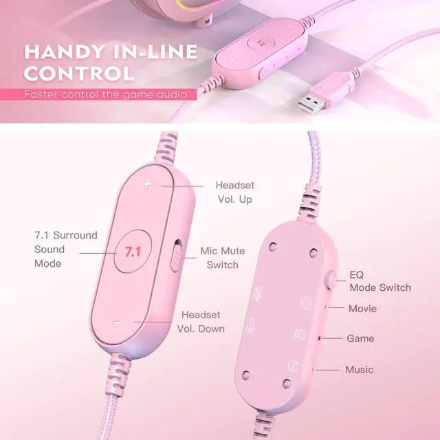 [Volume Control and EQ Mode] In line control on the PC headset with headset volume control, EQ mode and mic mute switch. Enter game mode to start FPS, movie mode for spatial sounds, music mode to increase the clarity of the audio stage.
