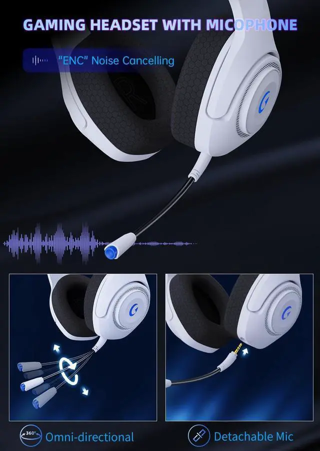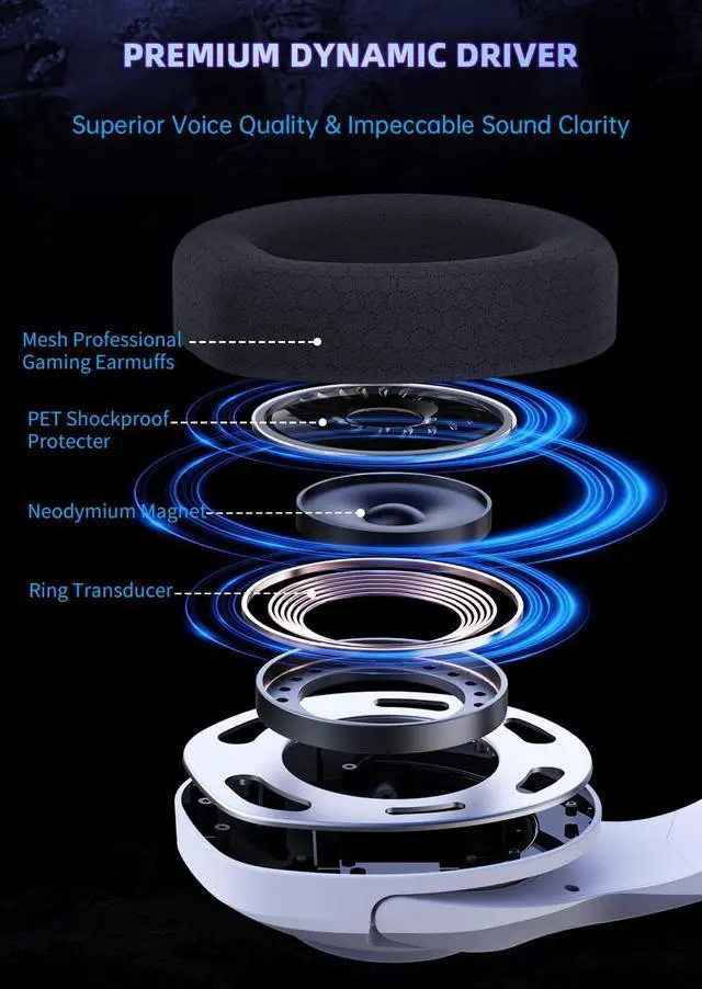 Upgrade PET Dynamic Driver & ENC Noise-Canceling MicrophoneKAPEYDESI top-level tech wireless gaming headset, featuring a 50mm dynamic driver and large diaphragm for precise game sound reproduction, capturing every detail, including footsteps and gunshots from all angles. The gaming headphones with omnidirectional microphones, compatible with PS5, PS4, and SWITCH, utilize ENC technology to minimize environmental noise, ensuring seamless communication with teammates.