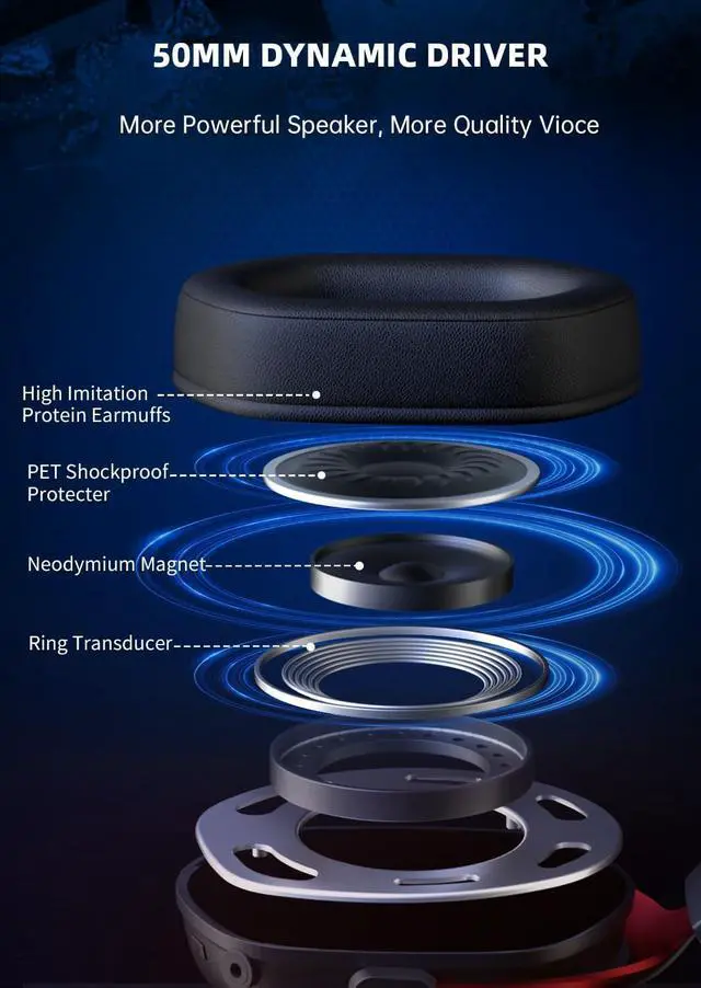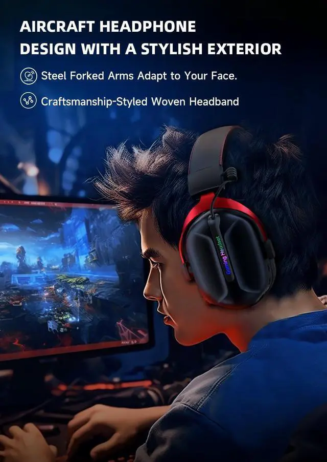 Improve Wearing Comfort by 30% & Design Gaming Headset Appearance Gonbouyukou's PS5 gaming headset draws inspiration from top brands, ensuring comfort and style. Its aviation headphones-inspired design, adjustable woven leather head beam, and aluminum alloy arms ensure a better fit on the face, and lightweight materials enhance fit, while RGB lighting adds a unique feeling.
