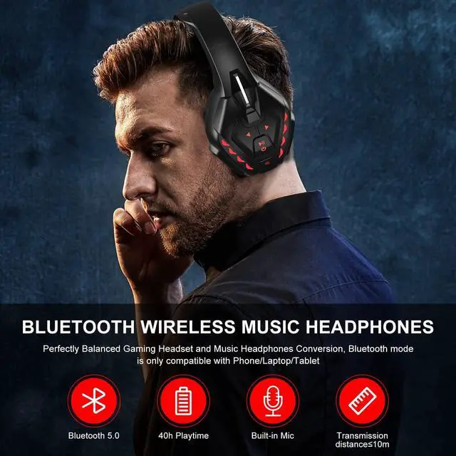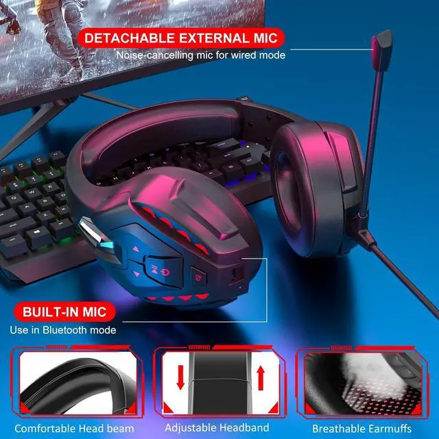 BLUETOOTH FUNCTION: Bluetooth headphones is simple and convenient to operate, no need to download software, equipped with built-in microphone, can be used after pairing and connection, one-click answering, playing songs, controlling LED lights, etc.