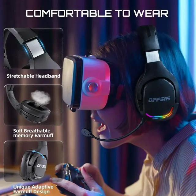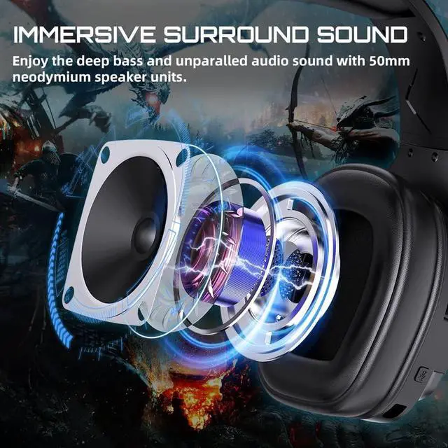 Ultimate Audio EnjoymentThe wireless headset equips 50mm driver, which not only provides deep and strong bass, but also a wide range of clear accurate sound, you will never miss a footstep or shot during game session. In addition, the headset has two modes for game and music, meet all your need at usual.