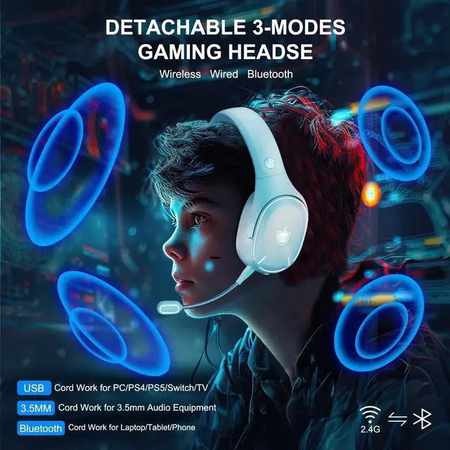 3 Connection Modes. Q6 headset has three connection modes: wireless gaming mode, Bluetooth music mode and 3.5 mm wired gaming mode. Making it a true all-rounder gaming headset.
