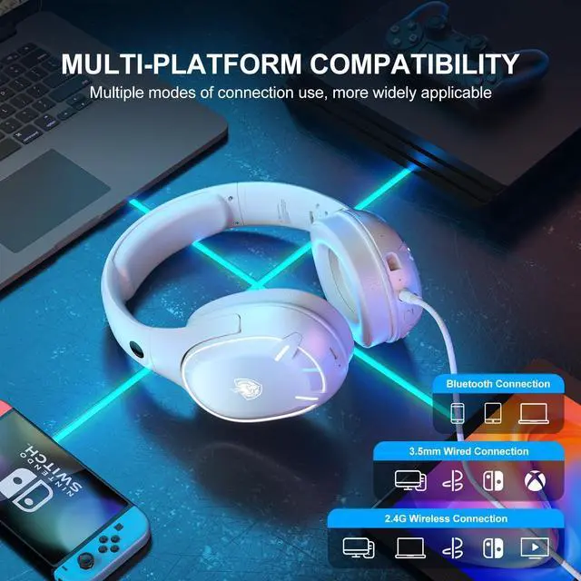 Multi-Platform Compatibility for Wireless Headsets. Wireless Gaming headset compatible with PC/PS4/PS5/Nintendo/Mac/TV devices, plug and play.
