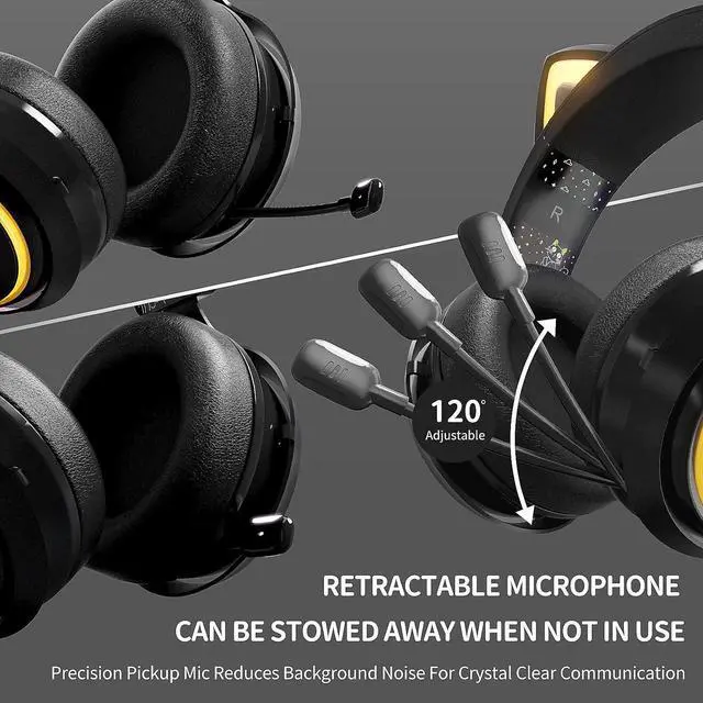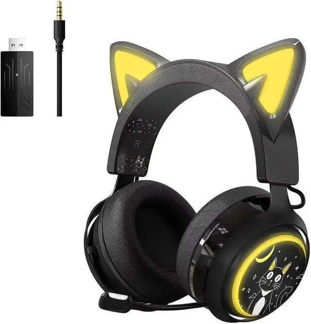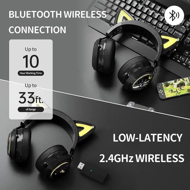 SOMIC GS510Pro Black Cat Ear Gaming Headset, Wireless Bluetooth/2.4GHz Headsets with RGB Lights, Retractable Mic, 7.1 Surround Sound Headphones for PS5, PS4, Laptop, PC, Phone