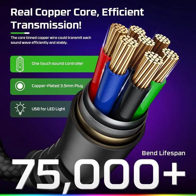 Note 3: The USB cable does not have an LED light. The 3.5 mm cable is there for sound only. Our gaming headsets are not USB headsets.