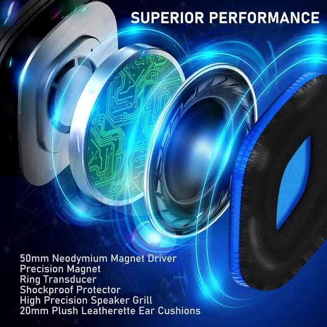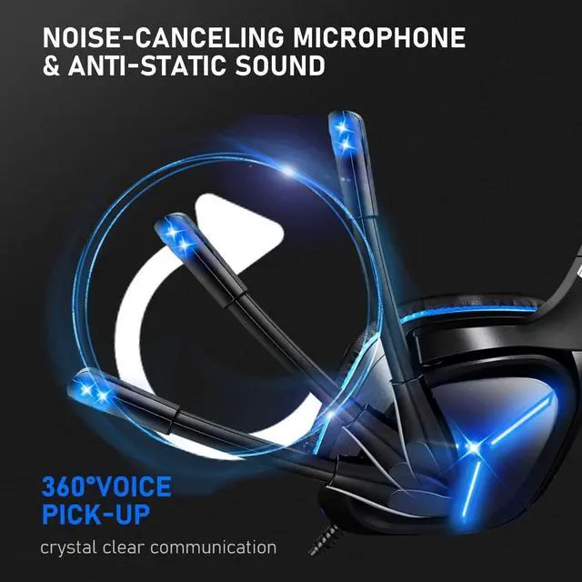 IMMERSIVE 3D SURROUND SOUND GAMING AUDIODo you want to distinguish exactly where the enemy's footsteps, guns, and cars are coming from in the game? 3D surround sound gives you a better and more realistic feel for the game's atmosphere and helps you win. gaming headset with microphone has shocking, clear, and deep bass sound, which is perfect for games, movies, and music. The LED light effect of the headset creates a gaming atmosphere (the USB port is only used for LED lighting).