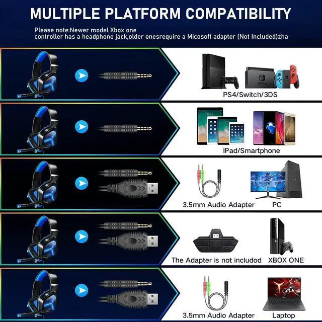 GREAT COMPATIBILITYUsb headset with microphone is suitable for new Xbox One, PS4, 3DS, PSP, PC, laptop, tablet, iPad, smartphone and other devices with 3.5 mm jacks.