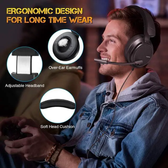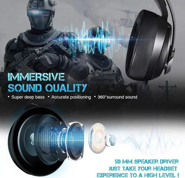 SURROUNDING STEREO EFFECTOur gaming headset with powerful 50mm sound drivers let you immerse yourself in the world of games, gives you competitive advantage by allowing you to hear everything from nearby enemy footsteps to distant reloads and improves your ability to track the sounds from different direction. Suitable for shooting games such as Call of Duty, Destiny 2, Fortnite, Overwatch, World of Warcraft Legion etc.