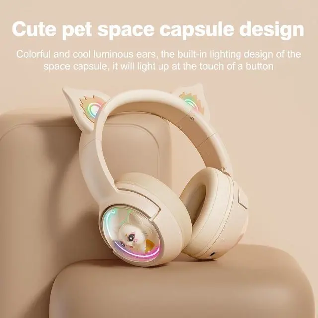 RGB Backlight: The cat ears are RGB backlit, and the ear-pads have RGB backlit 3D cats.