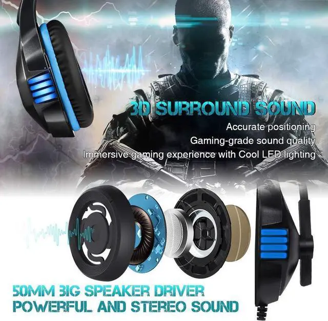Extraordinary Sound Effect Tuned strictly by professional technician, the 50mm large drive unit lay more emphasis on sound performance and create powerful stereo sound, you will fell as if you were truly on the game scene. With shocking, clear and deep bass sound effect, this headset is a perfect choice for games, movies and music.