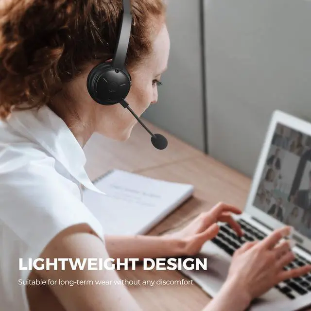 270° Rotatable Microphone & Lightweight Design The flexible boom mic can rotate freely as near your mouth as you want. Designed with an adjustable and wide headband, soft earmuff, and the net weight of the headset is 80g, there is no burden even if wear it for a long time.