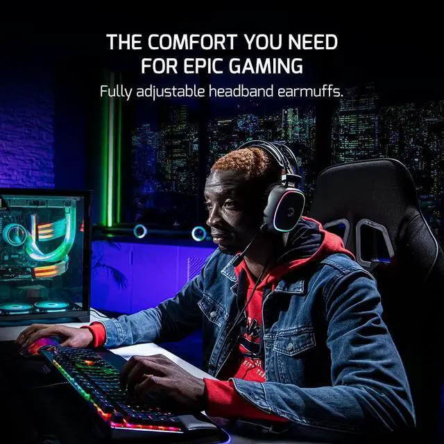 Wide Compatibility: Raijin Usb Gaming Headset seamlessly works with PC, PS4, and PS5 platforms, providing versatile compatibility for your gaming needs. Enjoy a stable and lag-free audio experience with the wired connectivity of this headset Raijin headset features a 7.2 -ft anti-tangle braided cable for added convenience