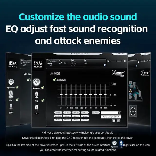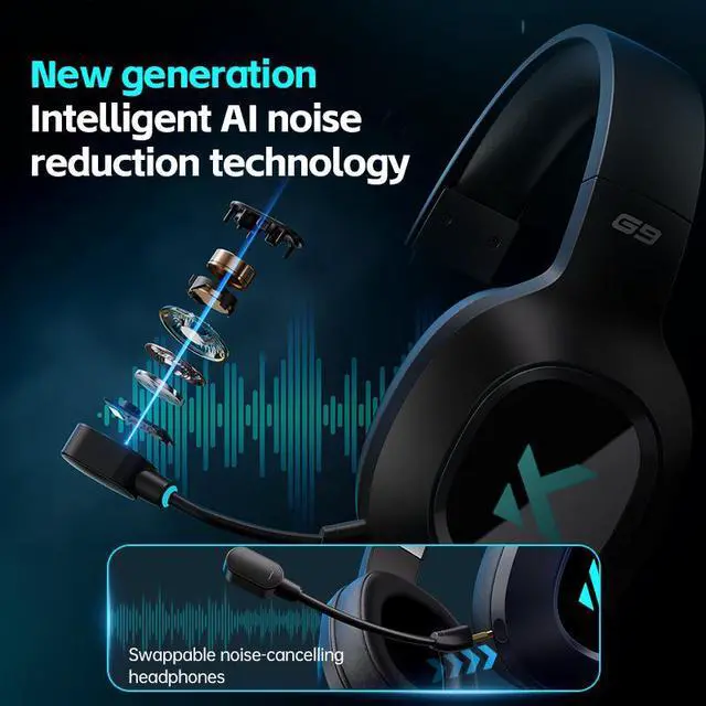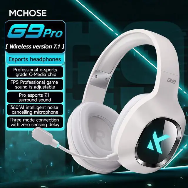 MCHOSE G9 PRO Wireless Gaming Headset 7.1 Surround Sound for PS5 PS4 PC SWITCH Mobile Phone TOPSPEED Gaming Headphones with Noise Canceling Mic, RGB Lighting, BT/2.4G/Wired Connect