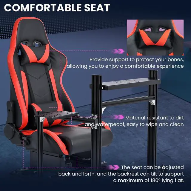 Comfortable seatsDual-lane PU leather seats are durable and easy to clean. The backrest can be adjusted between 90 and 180 degrees to suit different racing requirements.