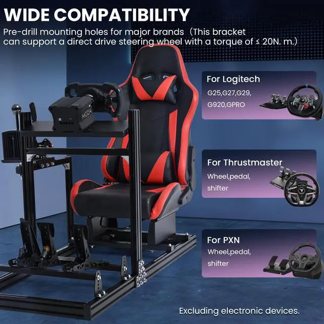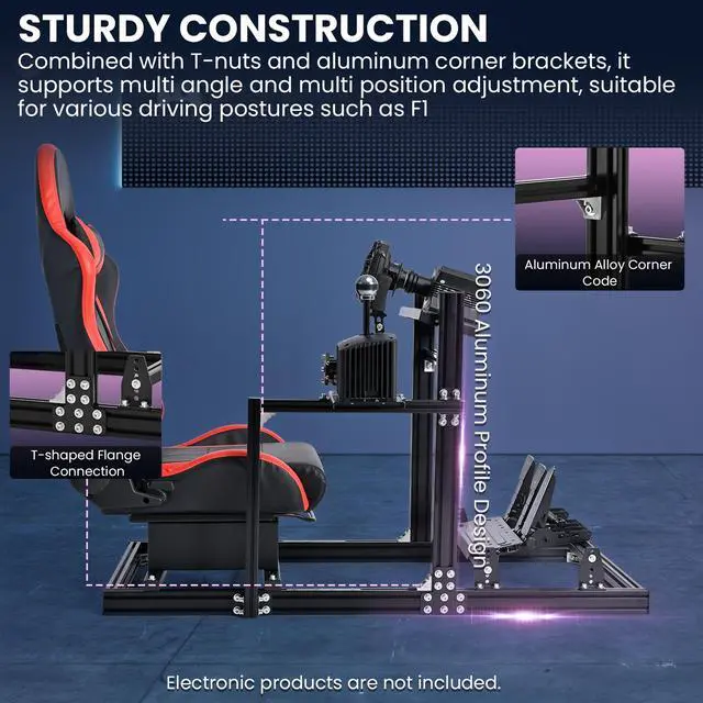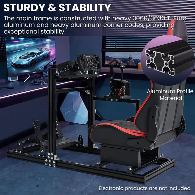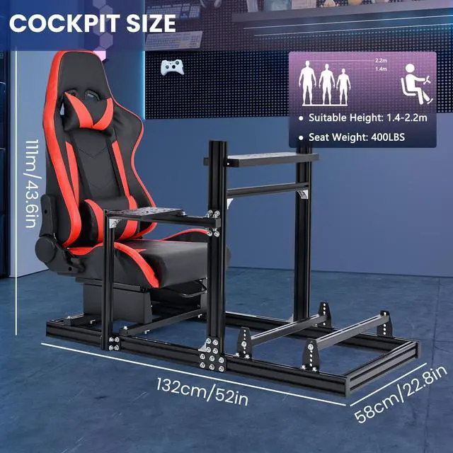 MaterialThe racing simulator is made of 30 x 60 mm strong and durable high-strength aluminium alloy, which remains stable during the race and is suitable for long-term use.