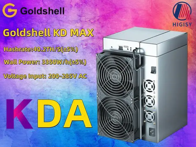 New Gold-shell KD MAX KDA Miner Hashrate:40.2TH/S(±5%) With C19 USA Power Cord Sold By Cooldragon
