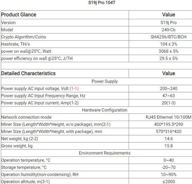 4:Please kindly note that the required input voltage for Bitmain Antminer S19J pro 104TH/s is 220V. Wrong input voltage may probably cause miner damaged