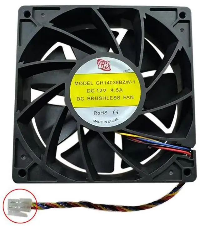 GH14038BZW-1 140MM 12V 4.5A cooling fan is a high-efficiency cooling fan designed for Whatsminer devices. The cooling fan has an optimized structure to ensure enhanced airflow while minimizing vibration and noise. Its applicable models include Whatsminer M60, M50, M30, and M20 series air-cooled miners.