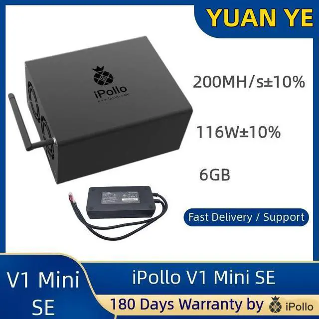 New iPollo V1 Mini SE Miner RAM: 6GB Hashrate: 220MH/s Power Consumation: 116W±10% With PSU and Power Cord Sold by YUAN YE