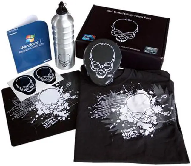 | Features | Show others that you've decided to release the full potential of the Intel Core i7 processor with the P55KG/SB Extreme Motherboard. Power Pack includes t-shirt package in skull packaging, mouse pad, temporary tattoo/sticker, aluminum water bottle and Windows 7 release candidate all packages in a limited edition power pack. |