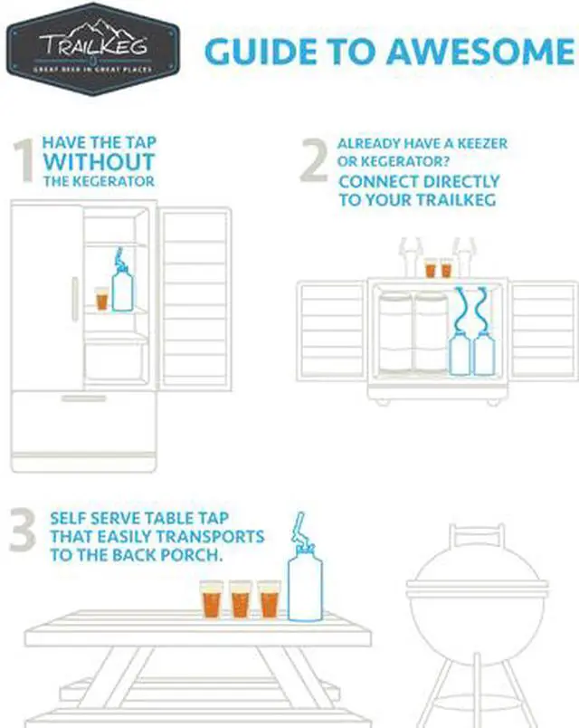 | Feature | TrailKeg Lid: Corny Keg Ball Lock (Liquid Out), 75psi Manual Pressure Vent, Quick Disconnect Regulator Port TrailKeg Gallon Growler: 128 oz. - 3.8L - 18/8 Stainless Steel, Vacuum Insulated, Double Sealing Lid with Handle Chrome Tap: Standard Ball Lock Disconnect, Classic Beer Tap Look Picnic Tap: Ball Lock Disconnect - 13" Tubing Length TrailKeg Regulator: Quick Disconnect Design, Dual Stage for Accurate, Consistent Pressure Compatible with 16g CO2, 0 to 30 psi range |