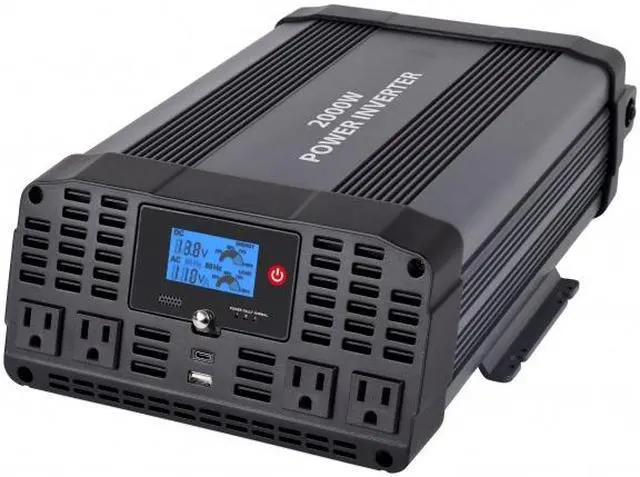 Versatile inverter that can convert 12V DC battery power into standard 110V AC mains voltage, allowing users to connect a wide variety of gadgets such as tablets, smartphones, laptops, camping accessories, and more. With a strong output power of 2000W (maximum continuous) and 4000W (peak), the inverter is powerful enough to handle even the most demanding electronics.
