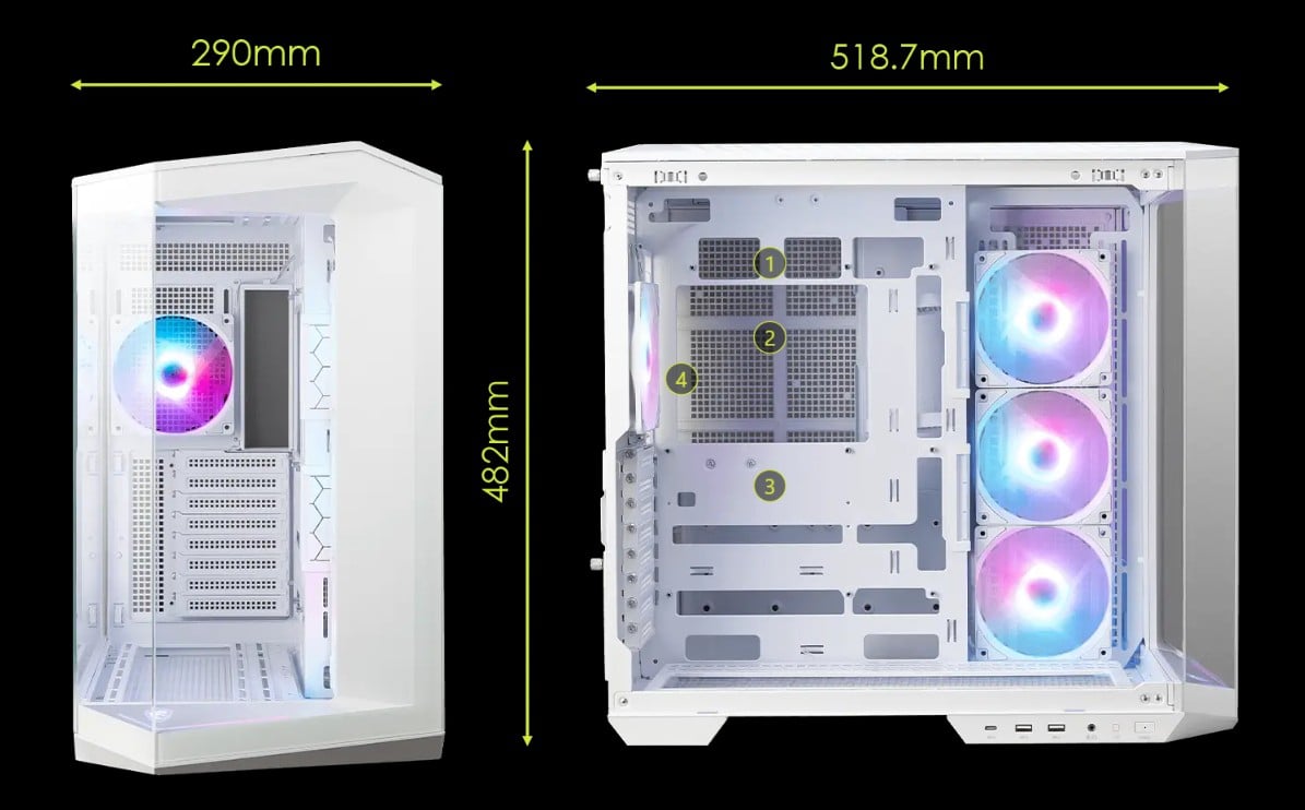 Pre-installed with 3 x ARGB reverse blade fans at the side and 1 x ARGB fan at the rear, ensuring optimal airflow while maintaining a pleasing and clean appearance.