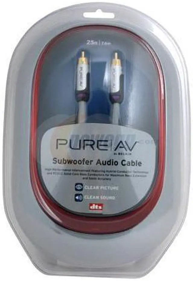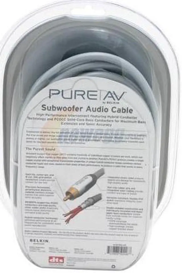 | Features | Subwoofer Audio Cables are designed specifically for the very low-bass frequencies produced by subwoofers. They use a single RCA jack for audio input and/or output. PureAV Silver Series Subwoofer Audio Cables use superior-grade materials and advanced technologies to deliver fuller, deeper, more extended bass response. |