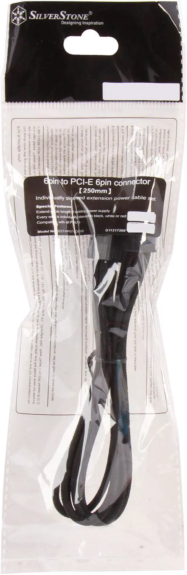 Silverstone PP07-IDE6B 11.81 in. (30cm) Sleeved Extension Power Supply Cable, 1 x 6pin to PCI-E 6pin Connector