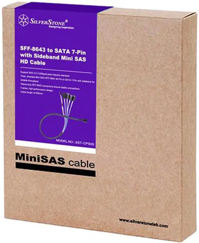 | Features | Support SAS 3.0 (12Gbps/Lane) industry standard Thick, shielded Mini-SAS SFF-8643 36-Pin to SATA 7-Pin with sideband for reliable throughput Heavy-duty SFF-8643 connector ensure stable connection 4 lanes, high-performance design Cable length of 500mm |