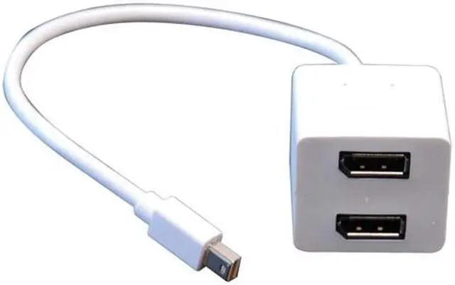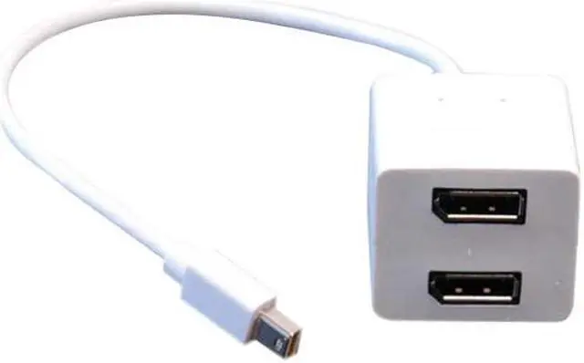 Tripp Lite P584-001-M2D takes a Mini - Displayport signal from the computer and splits it to two female Displayport connectors, allowing two Displayport enabled monitors to be connected ( mirror image on both monitors; does not allow extended desktop display ). 1ft overall length. Fully molded ends ensure a lifetime of use. Tripp Lite Limited Lifetime Warranty.
