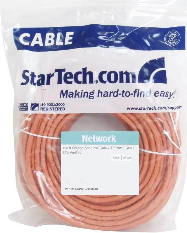 100ft Orange CAT6 Ethernet cable w/ 100% copper Multi Gigabit 1/2.5/5Gbps and 10Gbps up to 160ft|Fluke patch cord tested to comply w/ ANSI/TIA-568-2.D Category 6